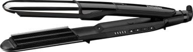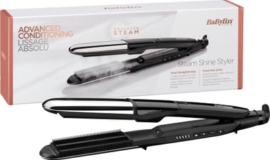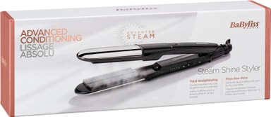 BaByliss Steam Shine -suoristusraudassa on tasaista lämpötilaa ylläpitävä Advanced Ceramics -järjestelmä sekä kähertymistä estävä Ionic-teknologia. Nopeasti käyttövalmiiksi kuumenevassa suoristusraudassa on 5 lämpöasetusta, joista voit valita omalle hiustyypillesi parhaiten sopivan. Turvallisuuden edistämiseksi laitteessa on automaattinen virrankatkaisu ja sen mukana toimitetaan kuumuutta kestävä alusta.
