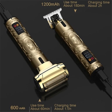 670 Miehen hiusleikkuri 4 raja-kammalla, paristokäyttöinen 2-in-1 kannettava hiustenleikkuri parturille Kel luva kolmit eräinen verkko, älykäs kelluva, tehokas parranajo, puhdas ja terävä teräs T-pää lyhyillä hammastetuilla hampailla, selkeästi veist