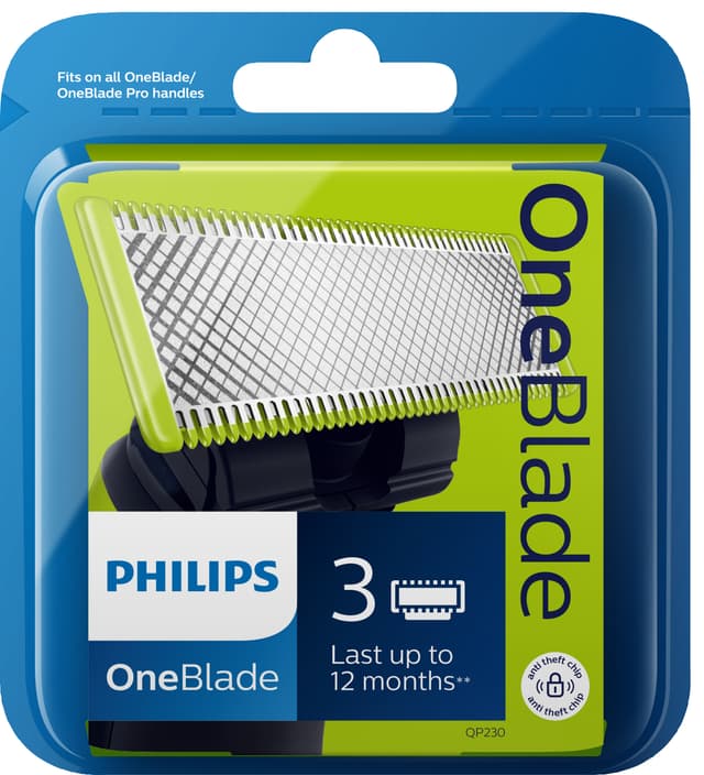 Philips OneBlade -vaihtoterät takaavat tarkan ja miellyttävän parranajon. Pakkaus sisältää 3 terää ja kestää jopa vuoden, sillä jokainen terä kestää jopa 4 kuukautta.