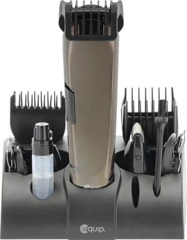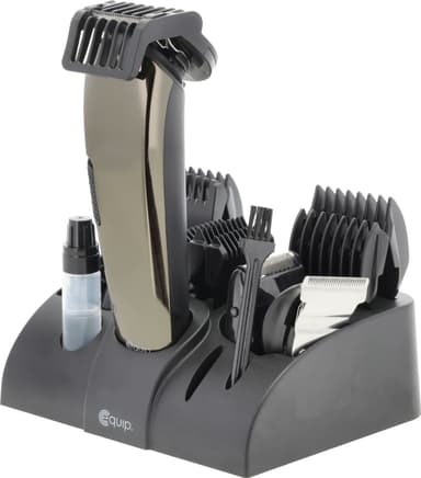 Nauti kätevästi Equip-monitoimitrimmerisetistä, joka tarjoaa korva-, nenä- ja hiustenleikkurin toiminnot yhdessä laitteessa. Tämä ladattava, 60-80 minuutin käyttöajan omaava johdoton trimmeri sisältää myös lukuisia lisävarusteita.Tutustu ominaisuuksiin