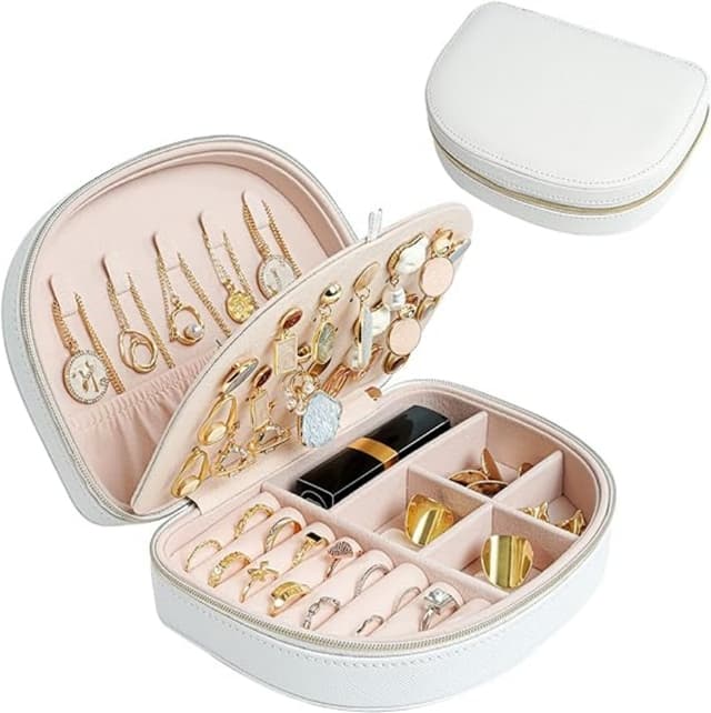 Kompakti ja kannettava: Tämä puoliympyrän muotoinen korurasia on kompakti ja helppo kuljettaa mukana, joten se sopii täydellisesti matkoille tai päivittäiseen käyttöön. Pidä suosikkitarvikkeet järjestyksessä missä ikinä menetkin.