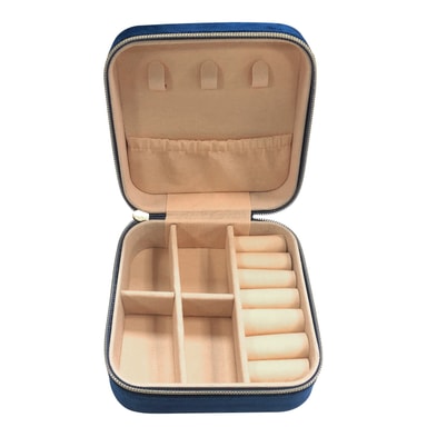 Valmistettu pehmeästä sametista ja koristeltu helmiäisillä yksityiskohdilla. Korurasia on suunniteltu helposti siirrettäväksi, ja siinä on useita lokeroita järjestettyä säilytystä varten.Tutustu ominaisuuksiin