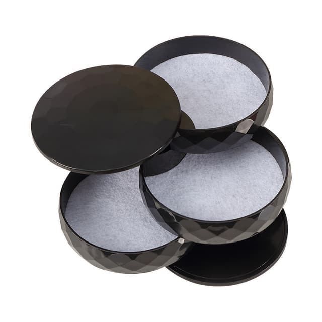 Helppokäyttöinen: 360 asteen kierto helppo ottaa, kerroksittainen muotoilu, helppo luokitella ja laittaa, laittaa siististi, ei ole helppo vahingoittaa esineitä, nelikerroksinen muotoilu, helppo säilyttää, kun sitä ei käytetä, Yläosassa on kansi suojaa aarteesi pölyltä ja naarmuilta.