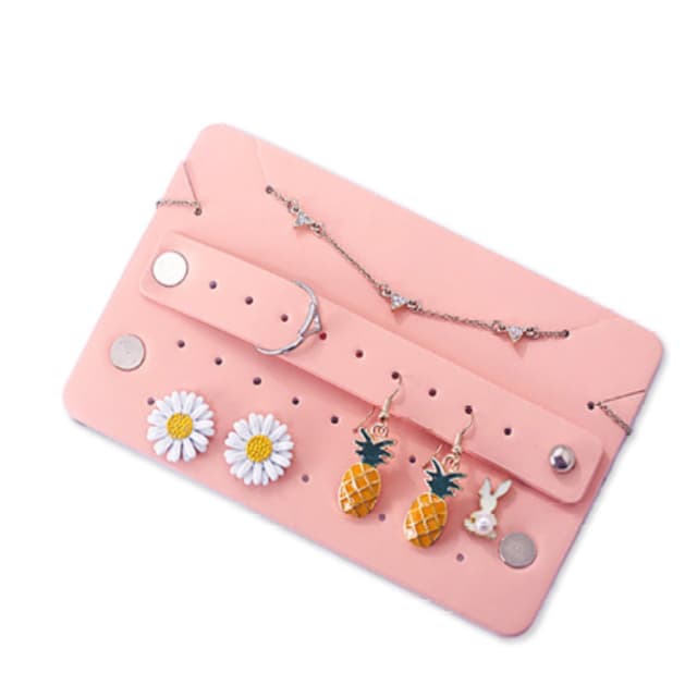 Denna arrangörstavla för smycken med flera hål och ringband är perfekt för att hålla dina örhängen, halsband, ringar och mer. Liten och bärbar, den är bekväm att bära runt i en väska.