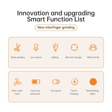 Kaksi toimintoa yhdessä: Tämä 2-in-1 sähköinen kynsileikkuri yhdistää leikkaamisen ja hiomisen yhteen kätevään laitteeseen. Se leikkaa kynnet tarkasti terävillä terillään ja hioo ne sitten hellävaraisesti sileäksi, salonkilaatuisen lopputuloksen saavuttamiseksi. Integroitu muotoilu säästää aikaa ja vaivaa, mikä tekee kynsienhoidosta nopeaa ja helppoa. Täydellinen hyvin hoidettujen kynsien ylläpitämiseen kotona. Tämä sähköinen kynsileikkuri ja -hiomakone on välttämätön kaikille, jotka etsivät ammattimaista manikyyriä ilman salonkikäyntiä. Sisäänrakennettu kynsileikkuujäteastia varmistaa puhtaan ja sotkuttoman kokemuksen, kun taas Type-C-lataus tarjoaa nopean ja kätevän virran.