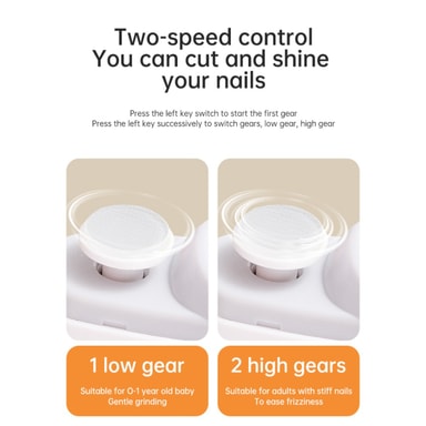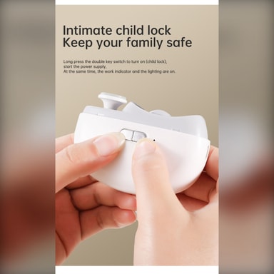 Parannetut turvaominaisuudet: Tämä sähköinen kynsileikkuri on varustettu lapsilukolla, joka estää tahattoman käytön ja varmistaa lasten turvallisuuden. LED-valo parantaa näkyvyyttä, mikä mahdollistaa tarkan leikkaamisen jopa hämärässä valaistuksessa. Kaksi nopeusasetusta sopivat erilaisille kynsien paksuuksille ja mieltymyksille, tarjoten räätälöidyn ja turvallisen kynsienhoitokokemuksen. Ergonominen muotoilu varmistaa mukavan otteen ja helpon käsittelyn, mikä vähentää liukastumisten ja loukkaantumisten riskiä. Tämä turvallisuuteen keskittynyt muotoilu tekee siitä ihanteellisen valinnan lapsiperheille tai henkilöille, joilla on rajoitettu kätevyys.