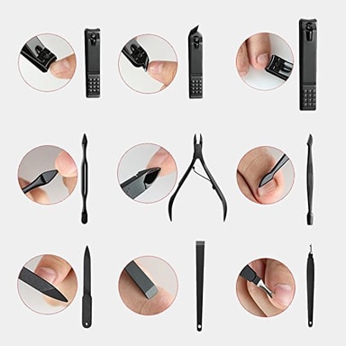 Manikyyriin ja pedikyyriin: Tämä 15-osainen manikyyri- ja pedikyyrisarja sisältää kaiken mitä tarvitset täydelliseen kynsien hoitoon. Mukana tulee myös työkaluja kulmakarvojen trimmaamiseen sekä aknen ja korvien hoitoon, ja sarja sopii sekä naisille että miehille.
