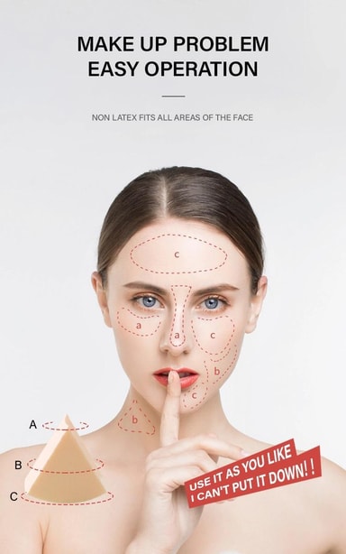 Täydellinen meikki: Tehosekoittimella jauheen, poskipunan, korostuskynän, muotoilijan jne. Levittämiseen luodaan täydellinen meikki. Meikkisienen huokoinen materiaali tarkoittaa, että esimerkiksi meikkivoiteen käyttö on vähäistä, koska se jää meikkisienen pinnalle ja jakautuu kauniisti ja tasaisesti.