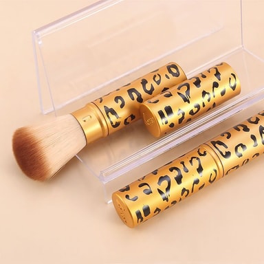 Kannettava ja kätevä: Ota meikkirutiinisi mukaan minne tahansa kannettavan kultaisen puuterisiveltimemme avulla. Sisäänvedettävä muotoilu ja suojaava kansi tekevät siitä helpon kuljettaa käsilaukussa tai matkalaukussa ilman huolta vaurioista tai sotkusta. Tämä sivellin on täydellinen nopeisiin korjauksiin päivän aikana, varmistaen, että näytät aina parhaaltasi. Kompakti koko ja kevyt muotoilu tekevät siitä olennaisen lisän matkameikkipakkaukseesi. Pysy virheettömänä missä tahansa menetkin tällä kätevällä ja tyylikkäällä siveltimellä.