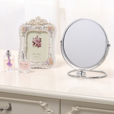 Meikkipeili, jossa suurennos toisella puolella ja oikea kuva toisella. Kääntyvän pohjan avulla voit säätää peiliä löytääksesi meikkisovelluksellesi täydellisen kulman. Sopii makuuhuoneeseen, kylpyhuoneeseen.