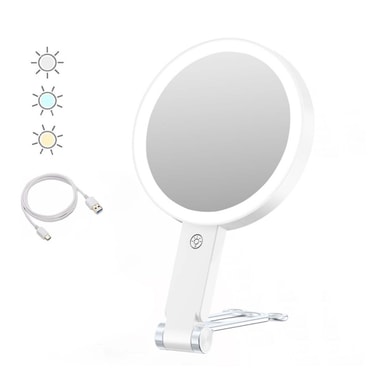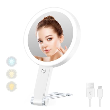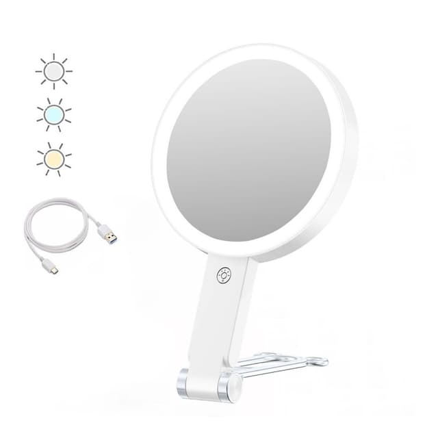 Monipuolinen 3-in-1 muotoilu: Tämä LED-meikkipeili tarjoaa vertaansa vailla olevaa monipuolisuutta, ja se siirtyy saumattomasti kädessä pidettävän, pöytämallisen ja seinään asennettavan kokoonpanon välillä tarpeidesi mukaan. Olitpa kotona, matkoilla tai levittämässä meikkiä ammattimaisessa ympäristössä, mukautuva muotoilu takaa optimaalisen mukavuuden. Integroitu 10-kertainen suurennus kaksipuolisen peilin toisella puolella tarjoaa poikkeuksellisen selkeyden yksityiskohtaiseen meikkaukseen, kulmakarvojen muotoiluun tai ihonhoitorutiineihin, kun taas tasainen peili tarjoaa todellisen kuvan heijastuksen, mikä tekee siitä täydellisen lisäyksen kauneustarvikkeisiisi. LED-valaistus takaa tasaisen valaistuksen, mikä on täydellistä virheettömään meikkiin ja yksityiskohtaiseen hoitoon.