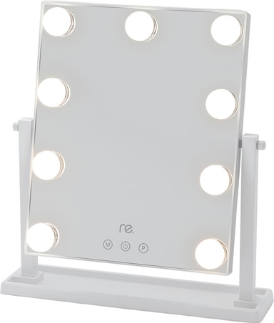 Päivitä kauneusrutiinisi re. Hollywood -meikkipeilin avulla. Siinä on 9 himmennettävää LED-lamppua, säädettävä valaistus ja 3 väritilaa. Kosketusohallinnan ansiosta sitä on helppo käyttää.Tutustu ominaisuuksiin