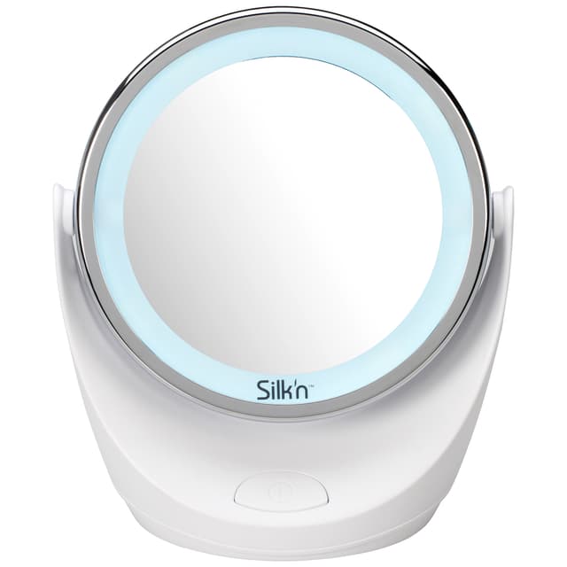 Silk'n-meikkipeilin kaksi puolta helpottavat päivittäisiä kauneudenhoitorutiineja. Se on varustettu LED-valolla ja kahdella suurennusasteella. Paristoilla toimivaa laitetta on helppo liikuttaa ympäriinsä.