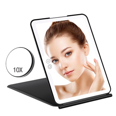 Ylivoimainen selkeys & suurennus: Koe vertaansa vailla oleva selkeys suuren LED-meikkipeilimme avulla. Integroitu 10x suurennuspeili mahdollistaa tarkan yksityiskohtaisen työn ja varmistaa virheettömän meikin levityksen joka kerta. Täydellinen eyelinerin ja ripsivärin levittämiseen, kulmakarvojen siistimiseen ja mustapäiden poistoon. Vääristymätön lasi tarjoaa kristallinkirkkaan heijastuksen, mikä tekee siitä ihanteellisen käyttäjille, joilla on heikentynyt näkö tai jotka haluavat vain tarkemman kuvan. Valaise kauneusrutiinisi ja saavuta ammattimaisia tuloksia mukavasti omasta kodistasi tällä olennaisella meikkityökalulla.