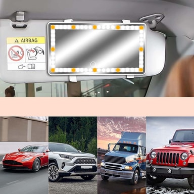 Yhteensopiva kaikkien ajoneuvojen kanssa: Käyttömukavuutta ajatellen suunniteltu LED-auton meikkipeilimme on yhteensopiva kaikkien ajoneuvomallien kanssa. Säädettävät joustavat hihnat varmistavat turvallisen ja vakaan kiinnityksen mihin tahansa aurinkolippaan, mikä tekee asennuksesta nopeaa ja vaivatonta. Ajoitpa sitten kompaktilla autolla, maastoautolla tai kuorma-autolla, tämä peili voidaan helposti kiinnittää ja säätää haluamaasi katselukulmaan. Tämä monipuolisuus tekee siitä olennaisen lisävarusteen jokaiselle kuljettajalle, parantaen päivittäistä rutiiniasi ja tarjoten arvokkaan työkalun henkilökohtaiseen siisteyteen tien päällä. Nyt voit vaivattomasti muuttaa autosi henkilökohtaiseksi siisteysasemaksi, varmistaen, että näytät aina parhaaltasi riippumatta siitä, minne olet menossa. Peili on yhteensopiva esimerkiksi automerkkien kanssa kuten: BMW, Volvo ja Mercedes-Benz.