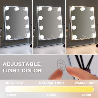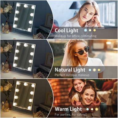 Säädettävä kirkkaus & 3 valoasetusta 3 eri valoasetusta, joiden kirkkautta voit säätää meikkiäsi varten: lämmin valo, päivänvalo ja kylmä valo.