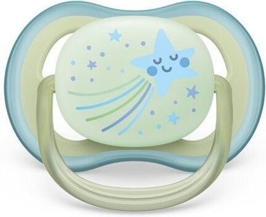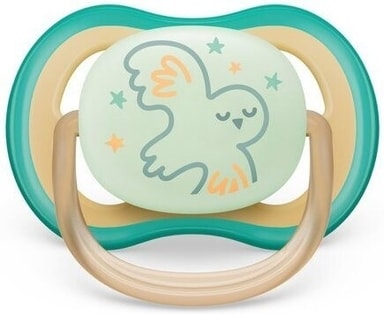 Pimeässä hohtavassa Philips Avent Ultra Air Nighttime -tutissa on huomioitu vauvan herkän ihon hyvinvointi. Tutissa on neljä suurta ilma-aukkoa takaamassa erinomaisen ilman virtauksen, joten vauvan iho pysyy kuivempana. Hampaiden luonnollista kehitystä tukee taipuisan silikonitutin symmetrinen muoto, joka suojaa lapsen ikeniä, kitalakea ja hampaita niiden kehittyessä. Valoa keräävä nuppiosa hohtaa yöllä heleää valoa, jotta pudonneen tutin löytää helpommin. Tuttien kuljetuskotelo toimii samalla myös mikroaaltouunin kestävänä sterilointiastiana, lisäät vain veden ja tutit ovat käyttövalmiita muutamassa minuutissa.
