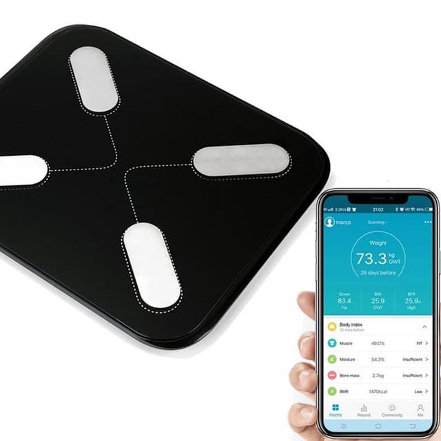 Painon ja terveyden seuraaminen on helppoa tällä älykkäällä henkilökohtaisella vaakalla. Voit helposti yhdistää henkilökohtaisen vaakasi matkapuhelimeesi Bluetoothin kautta. IOS- ja Android-kuntosovellusten avulla voit helposti rekisteröidä mittauksesi.