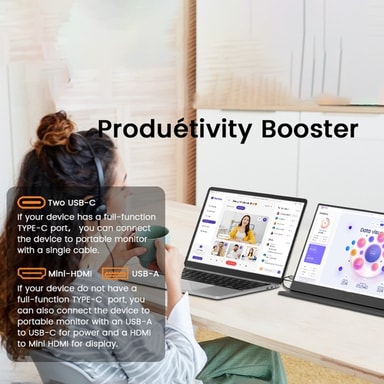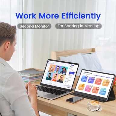 【Kannettava muotoilu】 Ohut ja kevyt rakenne tekee tästä näytöstä ihanteellisen käytettäväksi liikkeellä ollessa, olipa kyseessä työ tai viihde.