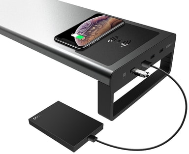 Muuta työpöytäsi sotkusta siistiksi työasemaksi Essentials-näytönkorottimen avulla, jossa on 4 x USB 3.0 -porttia ja Qi-lataus. Se on valmistettu kestävästä alumiinista ja on helppo asentaa, joten olet valmis toimintaan sekunneissa.