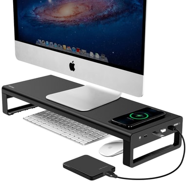 Pidä työpöytä siistinä ja paranna katselukulmaa tällä näyttötelineellä. Saat 4 USB 3.0‑porttia lisälaitteille ja Qi‑yhteensopivan langattoman latausalueen puhelimelle.Tutustu ominaisuuksiin