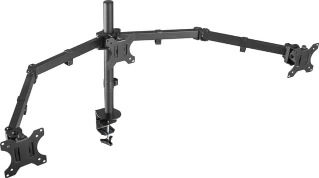 Essentials Triple Monitor Static on säädettävä teline kolmen näytön järjestelmille. Säädä näyttösi täydelliseen katselukulmaan ja pidä pöytäsi siistinä.