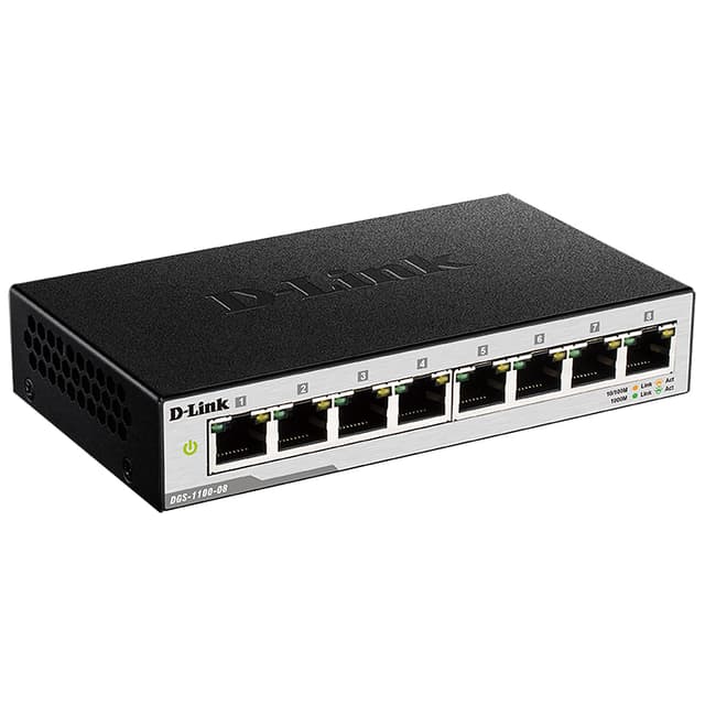 Pienille ja keskisuurille yrityksille sopivan D-Link DGS-1100-08 Gigabit Smart -kytkimen avulla voit yhdistää jopa 8 langallista verkkolaitetta turvallisesti. Kytkimessä on kahdeksan Gigabit Ethernet LAN -porttia jotka mahdollistavat myös verkkolaitteiden laajan hallinnan ja seurannan. Kytkimessä ei ole tuulettimia, joten se on erittäin hiljainen käytössä.