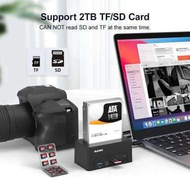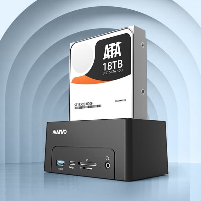 Maiwo K308P on ulkoisen säilytyskaapin ja telakointiaseman yhdistelmä. Sen avulla voit liittää tietokoneeseen 2,5"" tai 3,5"" SATA I/II/III -kiintolevyä tai SSD-levyä, joissa on jopa 20 Tt tallennustilaa USB-C 3.1 Gen 2 -liitännän kautta. Lisäksi siinä on portit SD-muistikorteille ja TF:lle. muistikortteja enintään 2 Tt, huomaa, että et voi lukea SD- ja TF-tiedostoja samanaikaisesti.