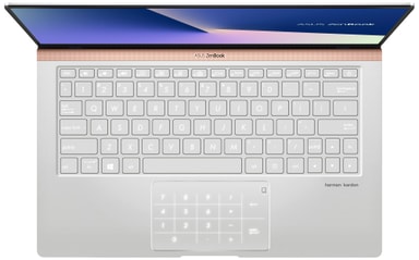 Taustavalaistussa näppäimistössä on miellyttävä 1,4 mm painallusetäisyys ja nopea vaste. Kosketuslevyä voi käyttää joko tavalliseen tapaan kosketusohjaukseen tai NumberPad-numerolevynä pikalaskutoimituksia varten.
