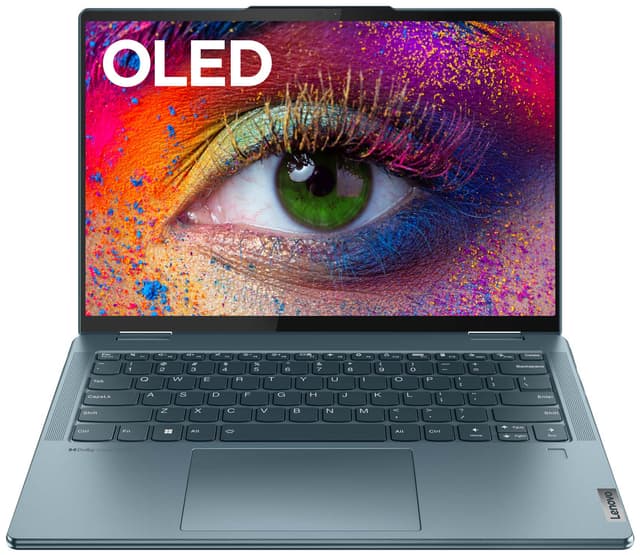 14-tuumaisessa OLED-kosketusnäytössä on kristallinkirkas ja erittäin yksityiskohtainen 1920 x 1200 pikselin WUXGA-tarkkuus. Kapeat sivukehykset maksimoivat käytettävän näyttötilan aiheuttamatta katsojalle tarpeettomia häiriötekijöitä. Käännettävän näytön ansiosta voit muuttaa kannettavan tietokoneen tabletiksi, jolloin voit kirjoittaa muistiinpanoja tai piirtää helposti mukana tulevan Lenovo Digital Pen -kynän ansiosta. OLED-teknologia tarjoaa syvät mustat sävyt ja kontrastin, erittäin eloisat värit ja laajat katselukulmat. Lisäksi näyttö tarjoaa HDR True Black 500 -ominaisuuden.