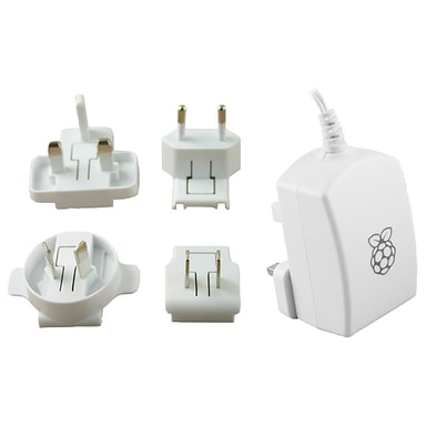 Virallinen virtalähde kaikille Raspberry Pi -mikrotietokoneille. Virtalähteessä on 1,5 m pitkä johto Mikro-USB -liitännällä ja jopa 5 V jännite / 2,5 ampeerin teho, joka riittää jopa neljälle mikrotietokoneeseen liitetylle USB-laitteelle. Mukana tulee pistorasia-adapterit Eurooppaan, Iso-Britanniaan, Yhdysvaltoihin sekä Australiaan, joten voit ottaa Raspberry Pi -mikrotietokoneesi mukaan myös matkoille.