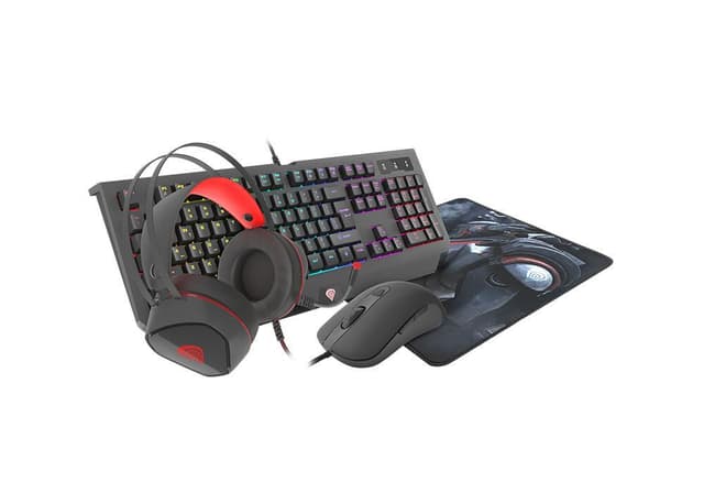 Pakkauksen sisältö: Näppäimistö, hiiret, kuulokkeet, hiirimatto, käyttöopas