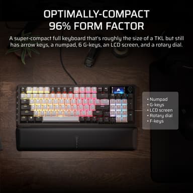 Corsair Vanguard 96 -näppäimistö on monipuolinen ja tehokas vaihtoehto, jossa on MLX Hall Effect -kytkimet, USB-C-liitäntä, mukautettu LCD-näyttö, 8K-kyselytaajuus, FlashTap SOCD ja näppäinkohtainen RGB-valaistus.Tutustu ominaisuuksiin