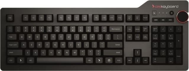 Das Keyboard 4 Professional mekaaninen näppäimistö, MX Blue -kytkimet, suurikokoinen äänenvoimakkuuden säädin, pohjoismainen näppäinasettelu, 2 m kaapeli, USB, musta