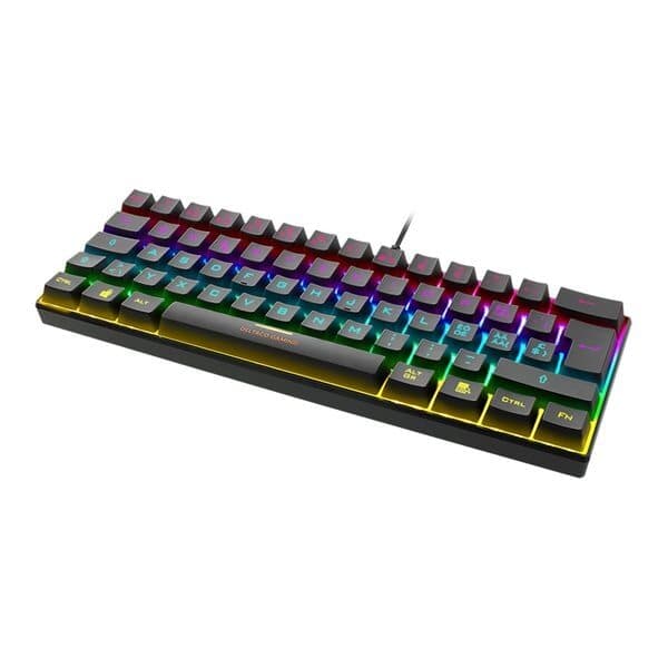 DELTACO GAMING esittelee valikoimansa pienikokoisimman mekaanisen näppäimistön. Tässä näppäimistössä on RGB-kytkimet ja sveitsiläinen asettelu. Tuotteessa on 60 prosenttia tavallisen näppäimistön painikkeista. Välilyönti on toteutettu tavallisena näppäimenä, joten siinä on sama tuntuma kaikista suunnista painettuna.