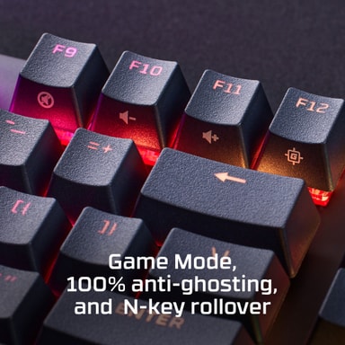Hyödynnä täysi räätälöintipotentiaali HyperX NGENUITY -ohjelmistolla: voit muokata makroja, näppäinkartoitusta, RGB-valaistusta, asettelua, pikanäppäimiä ja paljon muuta mieltymystesi mukaan. Ohjelmiston kautta voit myös käyttää Game Mode -tilaa poistaaksesi käytöstä tietyt näppäimet ja ehkäistäksesi tahattomat keskeytykset pelin aikana.