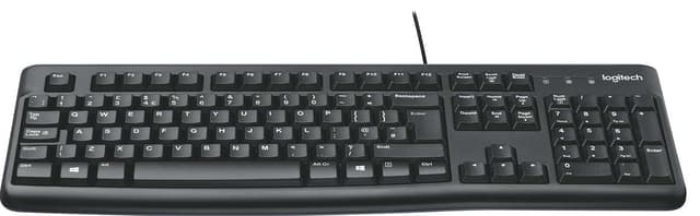 Logitech K120 -näppäimistö sopii keskittymistä vaativaan työskentelyyn, sillä sen matalan profiilin näppäimet ovat lähes äänettömät. Näppäimistö yhdistetään tietokoneeseen USB-kaapelilla.