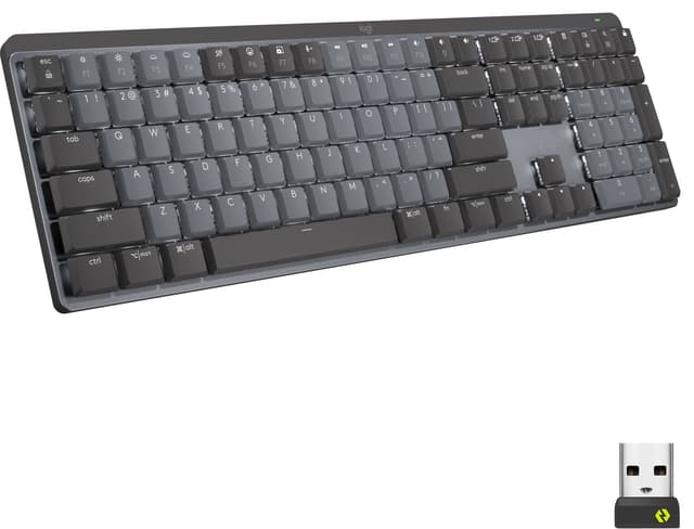 Langaton Logitech MX Mechanical -näppäimistö on minimalistinen, täysikokoinen ja langaton näppäimistö, joka on suunniteltu luoville tyypeille. Näppäimistö sisältää äänekkäät kliksuvat kytkimet, jotka tarjoavat erinomaisen tuntuman ja vasteen kirjoittaessa.