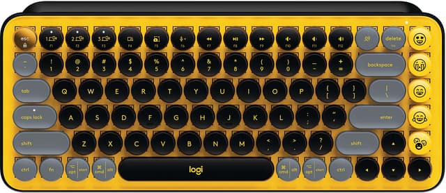 Kirjoituskonetta mukailevassa langattomassa Logitech Pop Keys Wireless -näppäimistössä on mekaaniset näppäimet ja 8 kustomoitavaa emoji-näppäintä, jotka voidaan sijoittaa neljään eri paikkaan. Siinä on myös emoji-valikkopainike ja Bluetooth-yhteys.Tutustu ominaisuuksiin