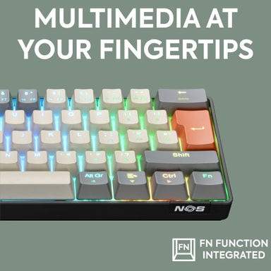 Lisää väriä pelilaitteistoosi ja säästä tilaa uhraamatta toimintoja NOS C-450 Mini PRO RGB -näppäimistöllä erityisillä näppäinhatuilla. Tavallista näppäimistöä 40 % pienempi laite sisältää 62 näppäintä, punaiset Outemu-kytkimet sekä RGB-valot.Tutustu ominaisuuksiin