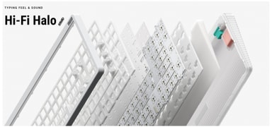 Kuusiosainen äänijärjestelmä ja piirilevyn tiivistekiinnitys tarjoavat parannetun akustiikan ja pehmustetun tuntuman, joka muistuttaa mittatilaustyönä tehdyn näppäimistön ominaisuuksia.
