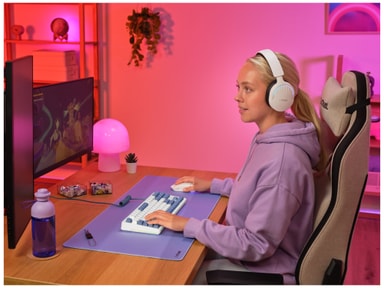 RGB-valaistus muuttaa työpöytäsi eloisaksi valonäytökseksi. 16,8 miljoonan värivaihtoehdon ja 12 Fn-näppäimen räätälöityjä media-, peli- ja tuottavuuspikavalintoja varten ansiosta voit säätää näppäimistön valaistuksen omaan tyyliisi ja pelisettiisi sopivaksi.