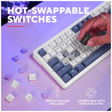 Trust GXT872 Xyra -pelinäppäimistö on mekaaninen näppäimistö, joka on suunniteltu parantamaan pelaamis- ja luovia kokemuksiasi. Gasket-kiinnitteinen rakenne lupaa pehmeän kirjoitustuntuman ja vaimennetun akustiikan. LEOBOG Seiya -lineaarikytkimillä varustettu näppäimistö takaa sulavan ja hiljaisen aktuaation. Täydet mukautusmahdollisuudet, kuten hot-swap-vaihdettavat kytkimet ja runsaat RGB-valaistusominaisuudet, tekevät tästä näppäimistöstä valinnan niille, jotka haluavat sekä suorituskykyä että tyyliä. Sen tenkeyless-malli tarjoaa enemmän pöytätilaa ja parantaa hiiren liikkumavaraa.