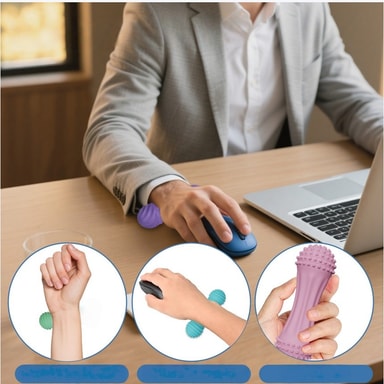 Ergonominen rannetuki: Tämä neljän violetin silikonisen hiiren rannetuen setti tarjoaa erinomaisen ergonomisen tuen ranteillesi pitkien tietokoneen käyttötuntien aikana. Ainutlaatuinen muotoilu auttaa ylläpitämään oikeaa ranteen asentoa, mikä vähentää rasitusta ja epämukavuutta. Teksturoitu pinta tarjoaa hellävaraisen hieronnan tunteen, mikä edistää rentoutumista ja ehkäisee rannekanavaoireyhtymää. Ihanteellinen toimistotyöntekijöille, pelaajille ja kaikille, jotka viettävät pitkiä aikoja hiiren kanssa. Nämä rannetuet ovat yksinkertainen mutta tehokas ratkaisu mukavuuden ja tuottavuuden parantamiseen. Silikonimateriaali on pehmeää, joustavaa ja helppo puhdistaa, mikä takaa pitkäaikaisen käytön ja hygienian. Koe ranteen mukavuuden ero ja sano hyvästit kivuille tämän olennaisen toimistotarvikkeen avulla.