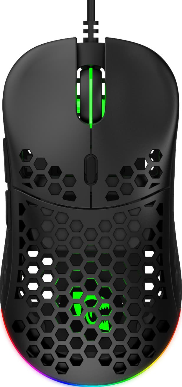 Muotoilu: Hunajakennomaisen muotoilun ansiosta hiiri pysyy viileän tuntuisena pitkäänkin käytettäessä.