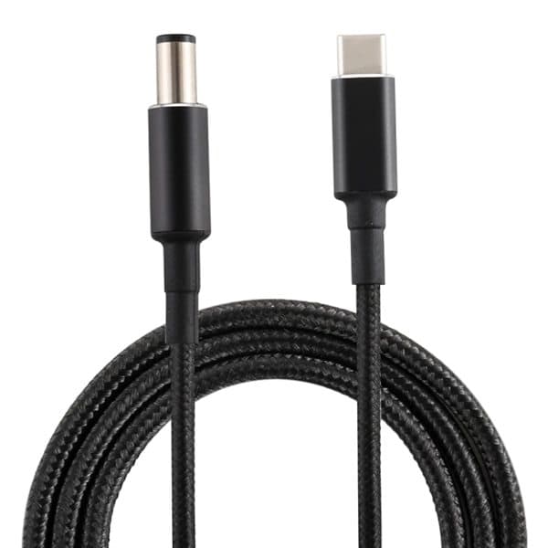 Virtakaapeli / latauskaapeli punotulla nailonkuorella kannettavalle tietokoneelle, 100 W. 7,4 x 0,6 mm uros-USB tyyppi-C liitin. Kaapelin pituus 1,7 m.