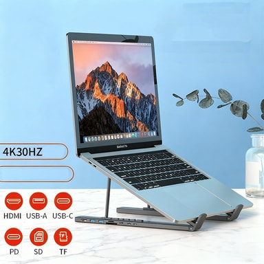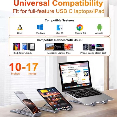 Kannettava ja kätevä: Kannettavuutta varten suunniteltu telakointiaseman kannettavan tietokoneen jalusta on kevyt ja helppo kuljettaa. Sen kompakti muotoilu tekee siitä ihanteellisen matkustamiseen, jolloin voit perustaa työaseman missä tahansa. Mukana toimitettu kantolaukku tarjoaa lisäsuojaa ja mukavuutta. Olitpa sitten töissä kotona, toimistossa tai tien päällä, tämä telakointiasema varmistaa, että sinulla on kaikki tarvittavat portit ja ergonominen tuki. Se on yhteensopiva useiden kannettavien tietokoneiden merkkien kanssa, mukaan lukien APPLE, Samsung, Huawei ja Garmin, mikä tekee siitä monipuolisen työkalun kaikille ammattilaisille. Sen kannettavuus varmistaa, että voit ylläpitää tuottavuutta missä tahansa oletkin.
