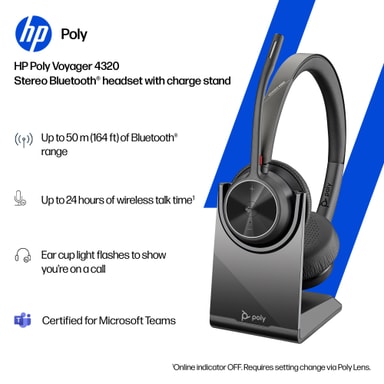 • HP Poly Voyager 4320 MS Teams kuulokkeet USB-A kaapeli + latausteline