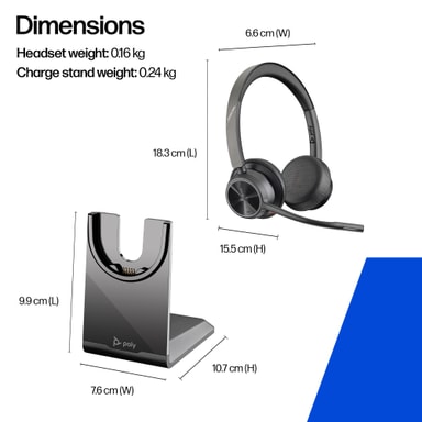 HP Poly Voyager 4320 MS Teams kuulokkeet USB-A kaapeli + latausteline