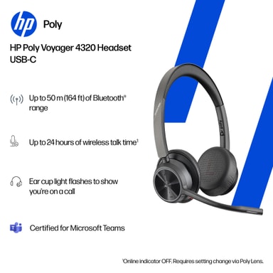 • HP Poly Voyager 4320 MS Teams USB-C kuulokemikrofoni